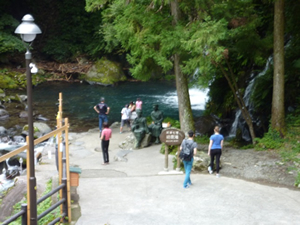 ▲茶屋の前を左に下って行くと二つの川が一つの川の 流れになる所に出合滝があります |