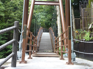 ▲えび滝から釜滝へ向かうつり橋 |