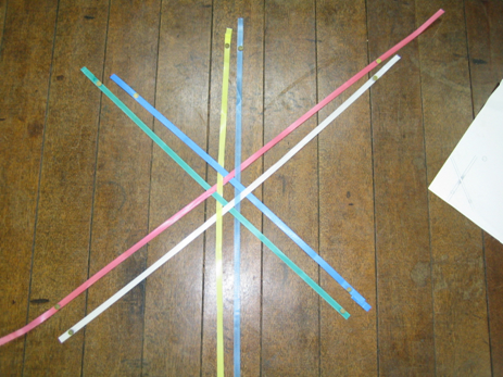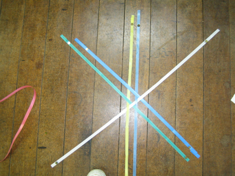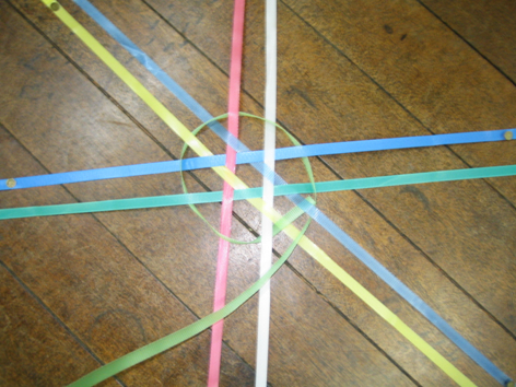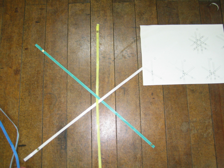 | (3) |  | 4番目水色を緑色の下白色の上になるように黄色と平行に |