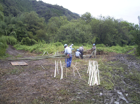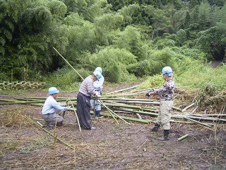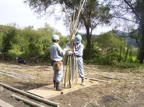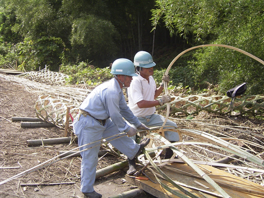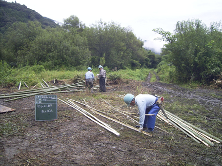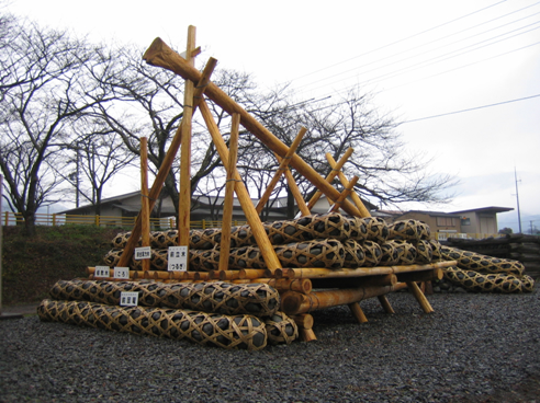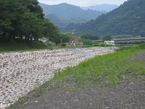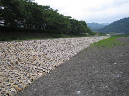 | 竹蛇篭護岸として(島田市川根町家山川に施工) |