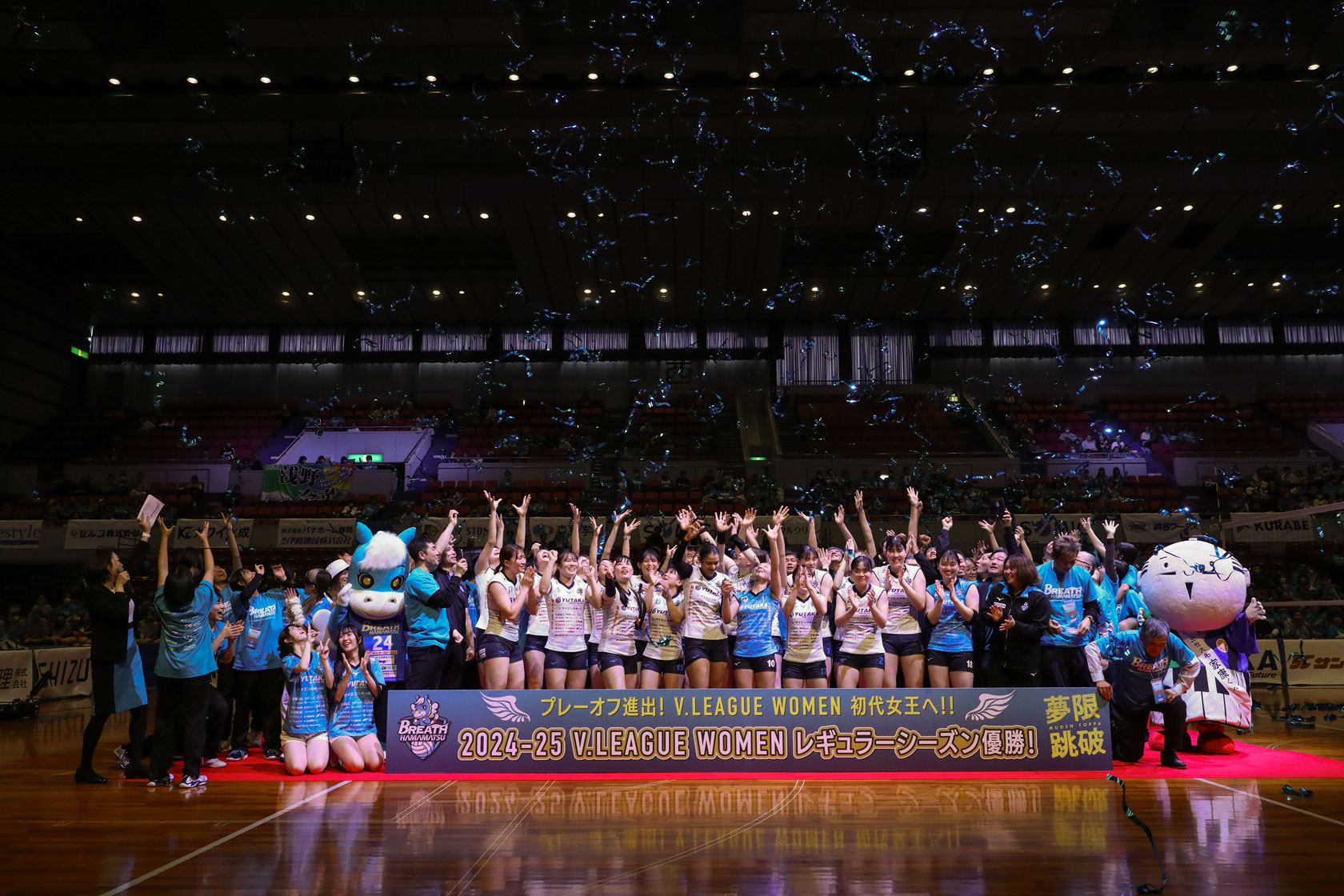 2024-25 V. LEAGUE WOMEN のレギュラーシーズンを終了し、新シーズンの開幕を控える中、クラブの成り立ちや今後の目標、意気込みなどをブレス浜松の野田滋丈代表、ブレス浜松の濱田義弘監督、キャプテンの坂口莉乃選手に聞いた。