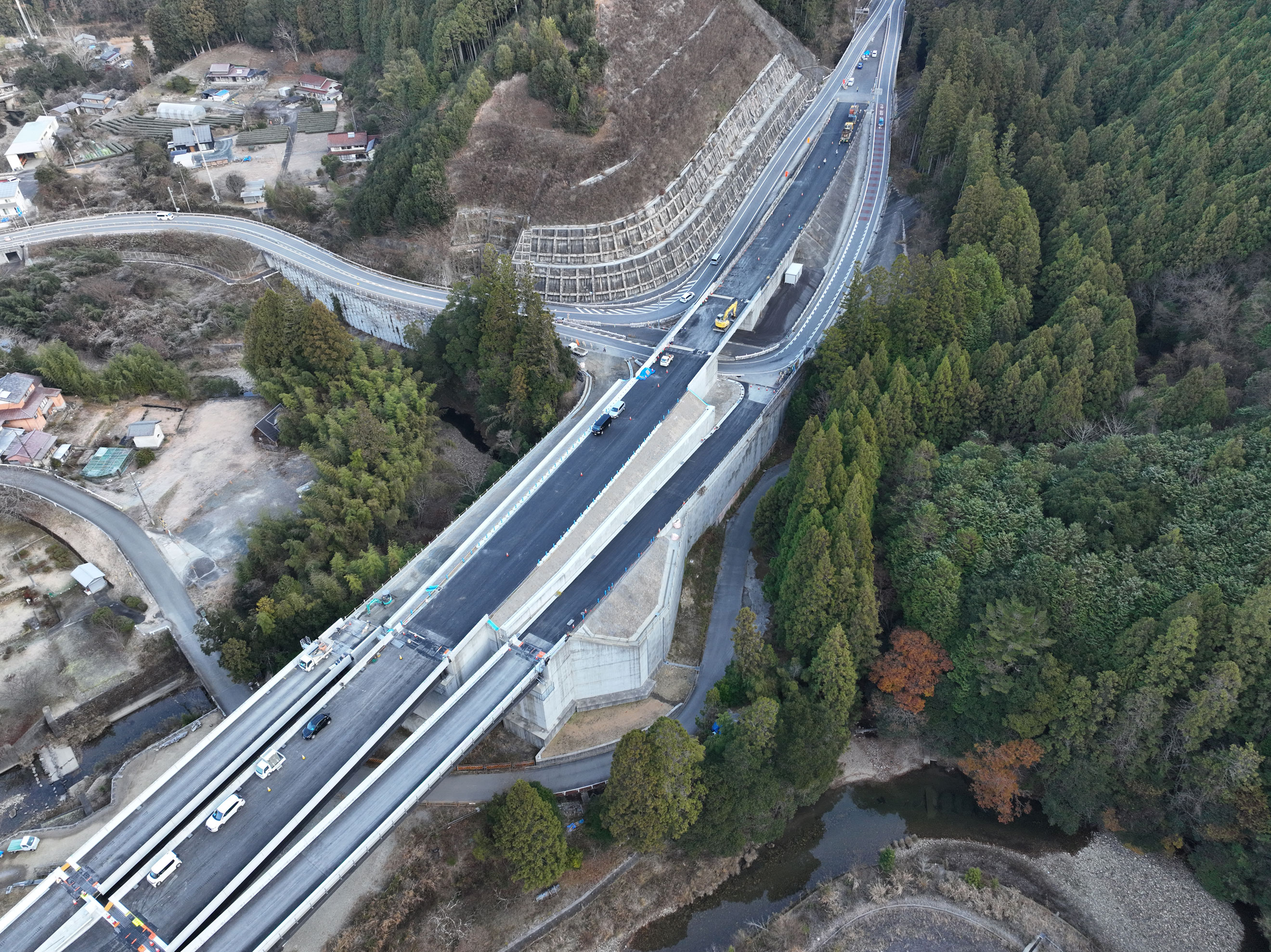 三遠南信自動車道の一部を構成する佐久間道路・三遠道路では、平成24年に鳳来峡IC~浜松いなさJCT、平成31年に佐久間河合IC~東栄ICが開通しました。今年度中に東栄IC~鳳来峡ICの延長約7.1kmが開通予定で、約27.9kmの佐久間道路・三遠道路が接続します。