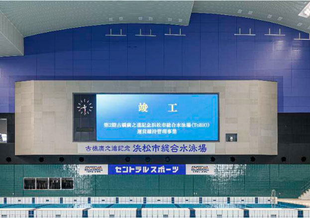 古橋廣之進記念浜松市総合水泳場(ToBiO)は、供用開始から15年の節目を迎え、大規模改修を実施した。改修期間は約18か月。メインプールの吊り天井改修をはじめ、照明の全面LED化、水回り設備の更新、大型映像装置の刷新などを行い、安全性と機能性の向上を図った。施設を運営するセントラルスポーツ株式会社の佐野卓郎さんに、改修の狙いや施設の特徴などについて話を聞いた。